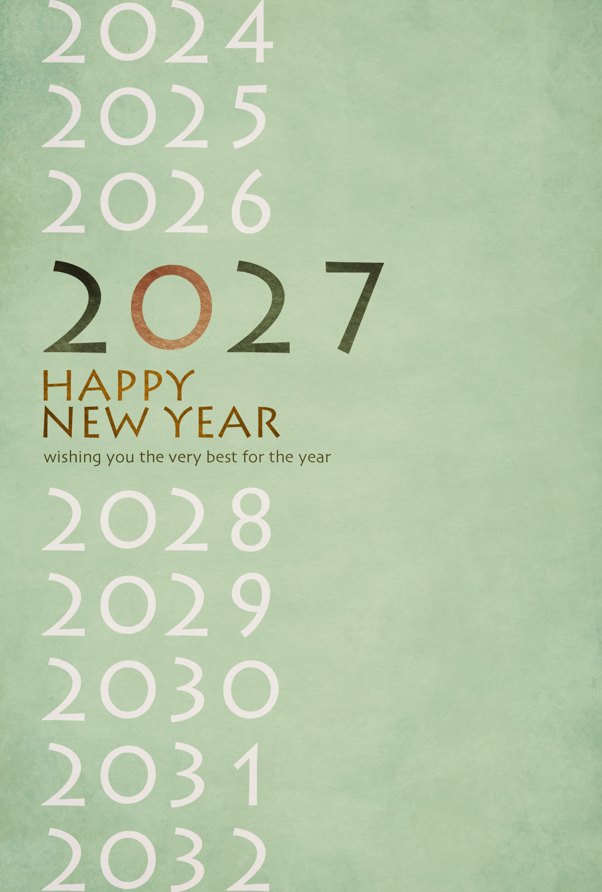 くすみ味のある淡い緑色の背景にスタイリッシュな年号を使ったレトロ風のデザインです。