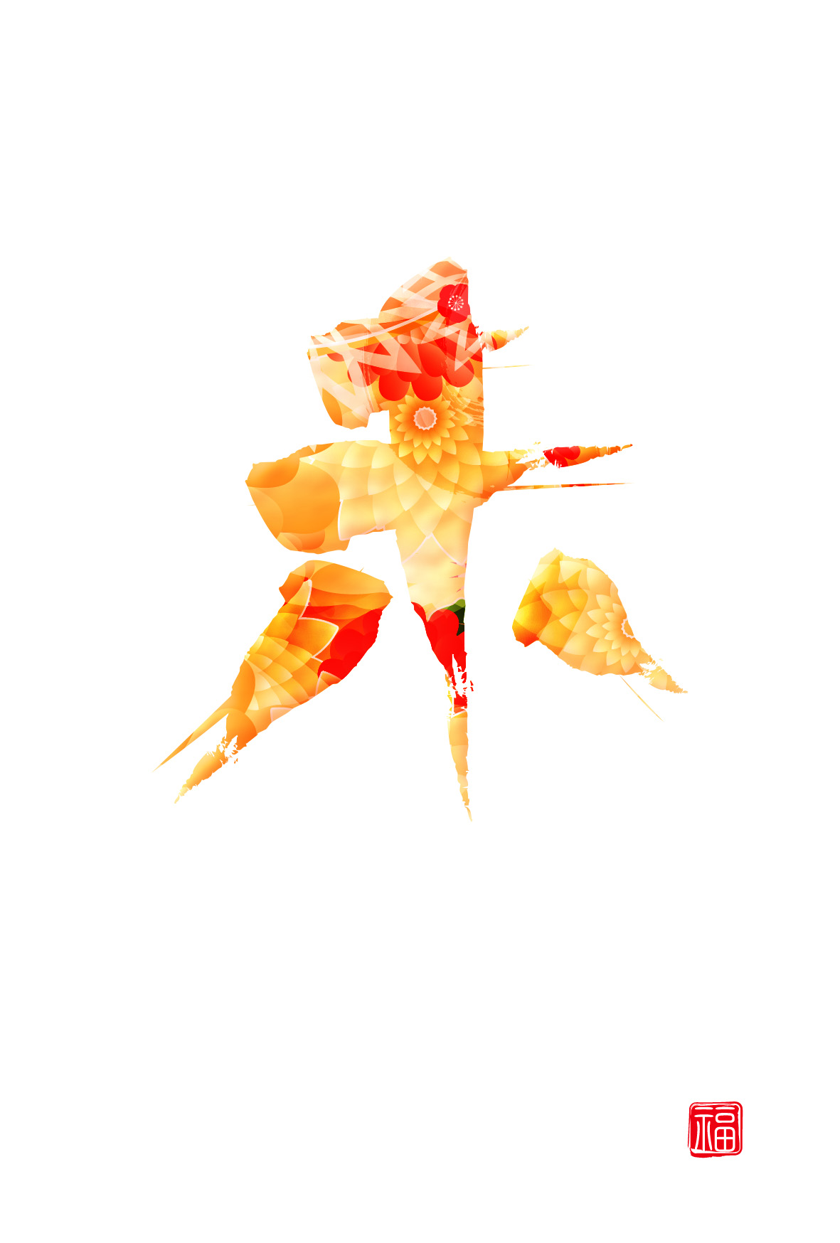 手書き風の「未」の文字に、おしゃれで華やかな花柄を使った、新年にふさわしいデザインです。