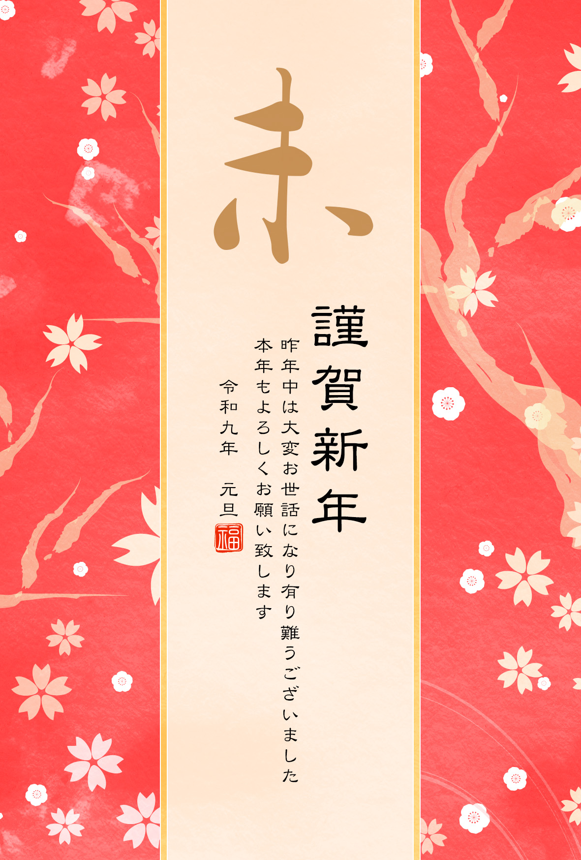 年賀状 2027 無料 | テンプレート・登録不要・和風 [W014]