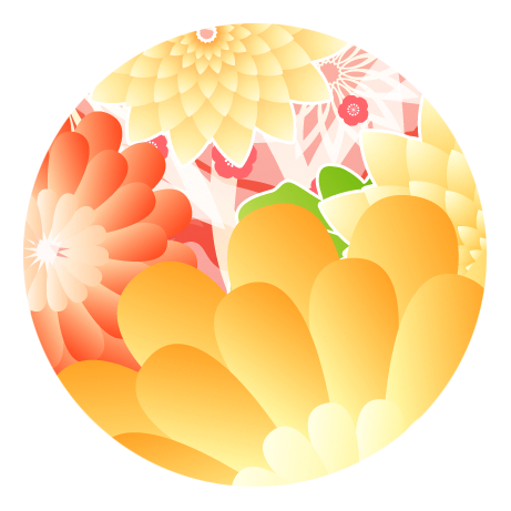 玉手毬の中に華やかな花模様で飾った和風のイラストです。