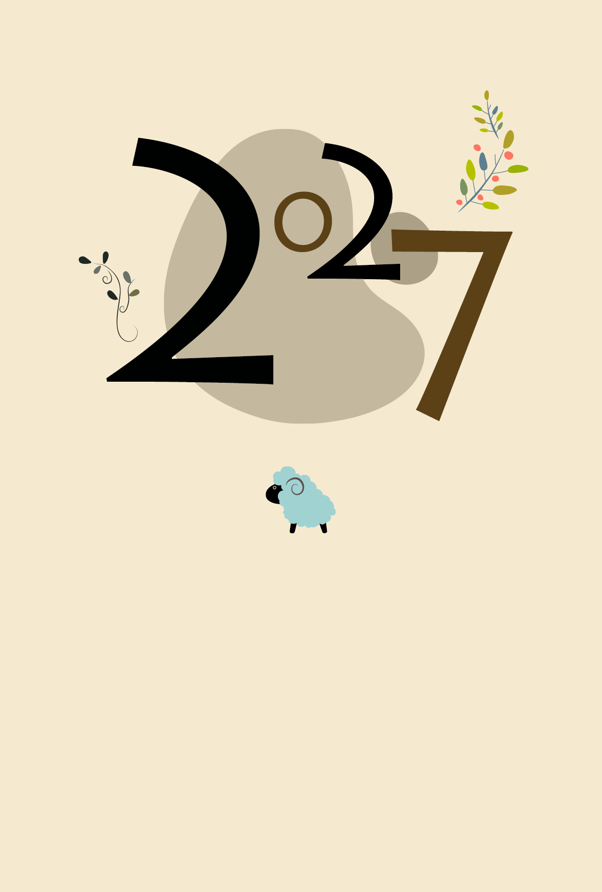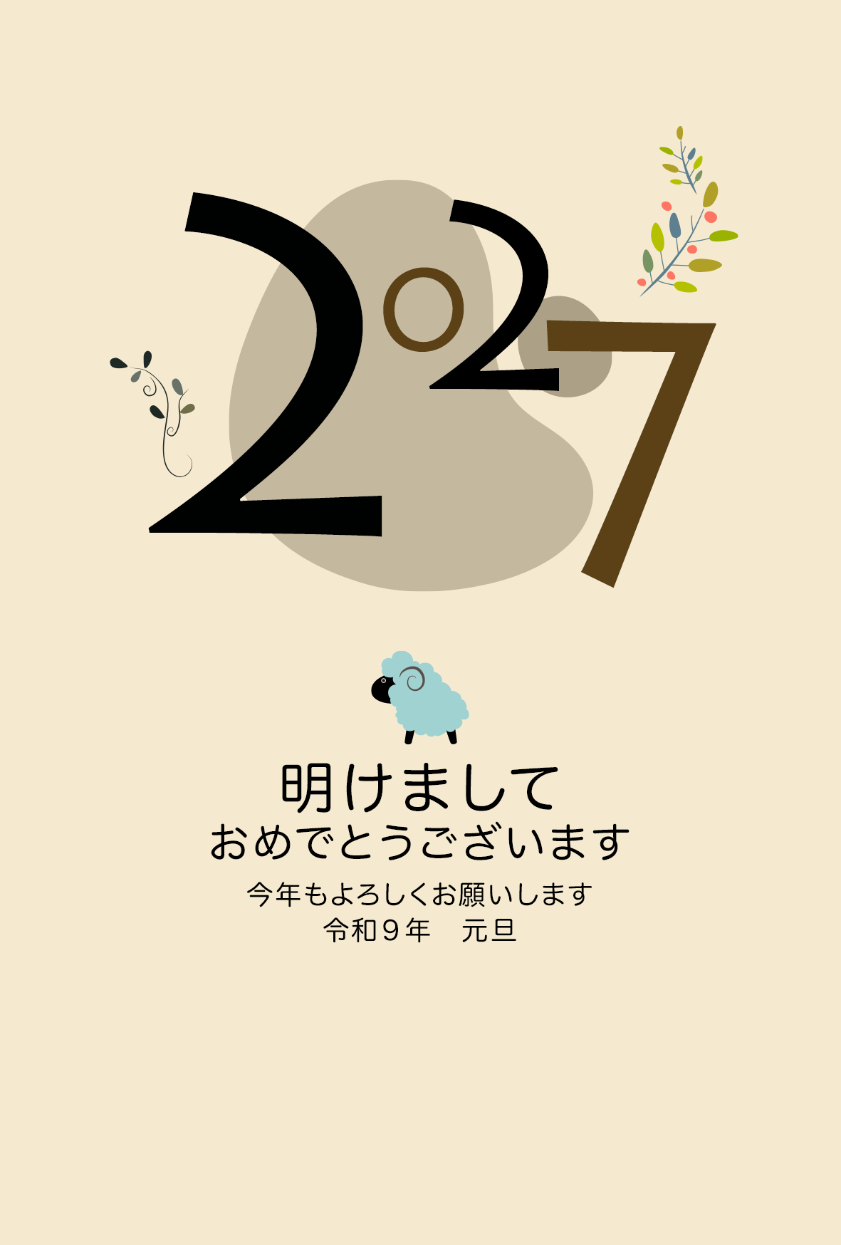 2027年(令和9年)の年始挨拶にふさわしい、シンプルだけど何処か「かわいい」年賀状テンプレートです。