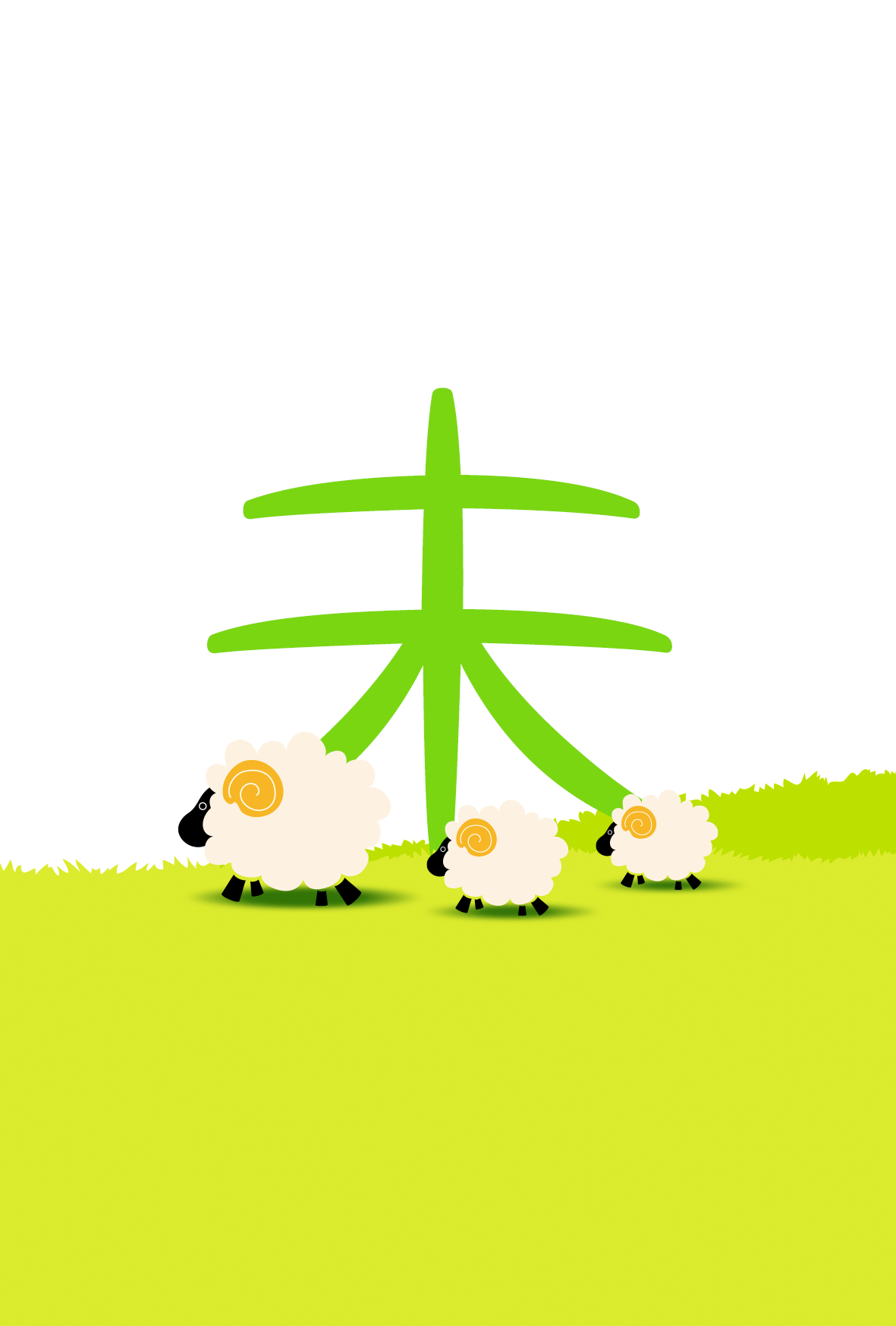 3匹の羊が草原をトコトコ歩いている、可愛らしいデザインになります。