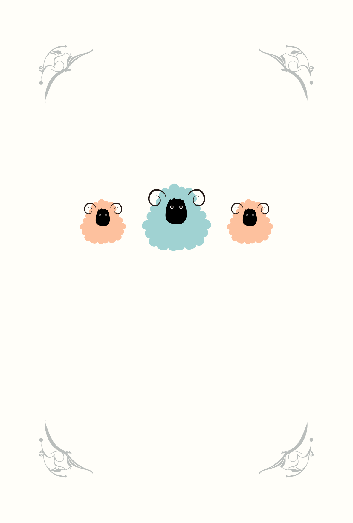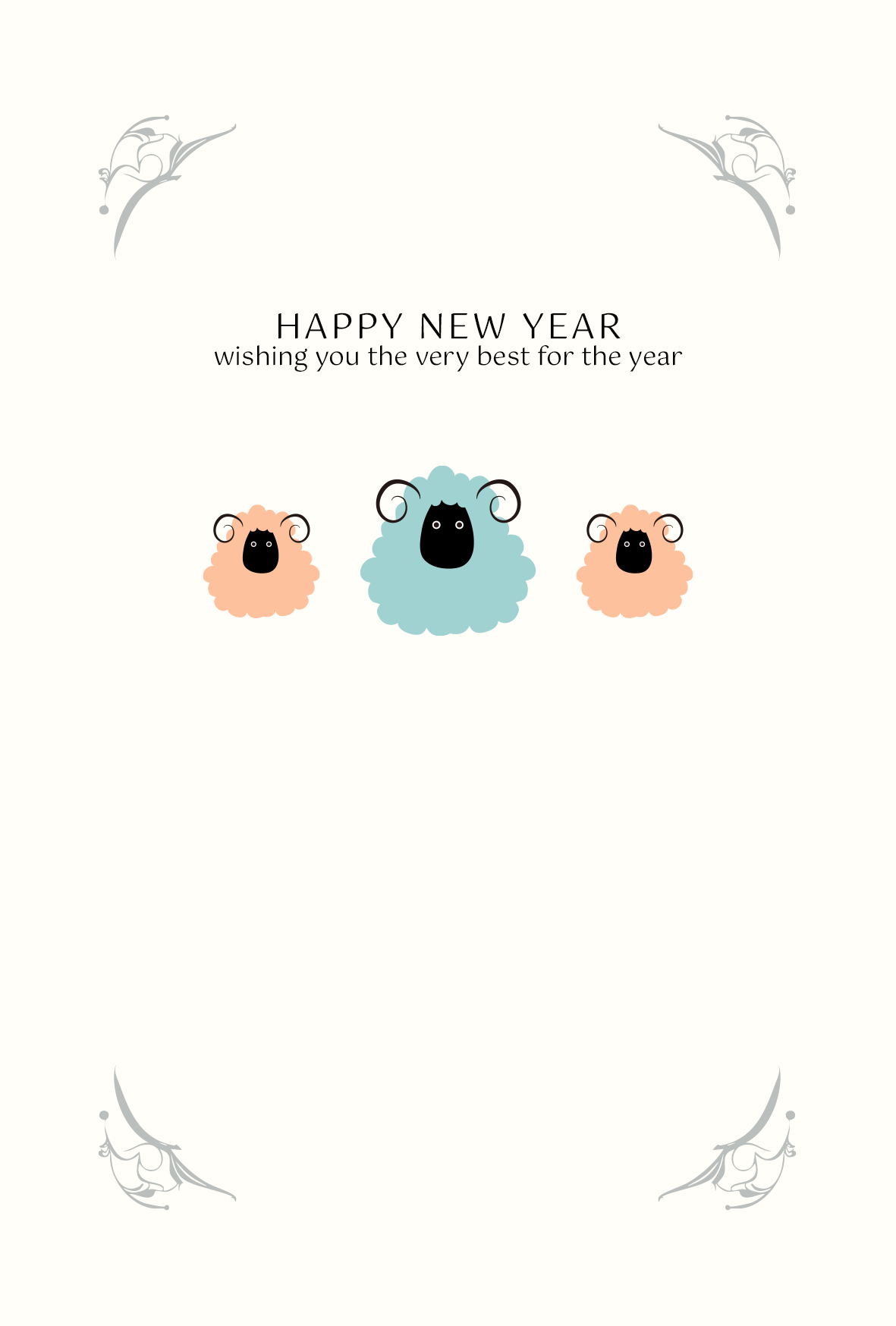 淡いベージュの背景と飾り枠を四方に使った上品な3匹の可愛い羊のデザインになります。