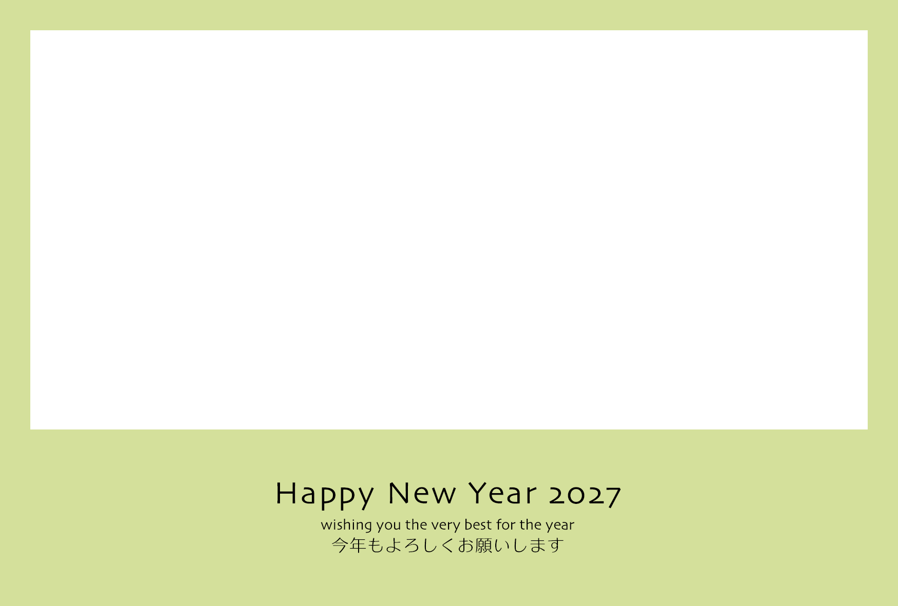 2027年(令和9年)の年始挨拶に。家族の写真や思い出を鮮やかに伝える、写真フレームタイプの年賀状テンプレートです。
