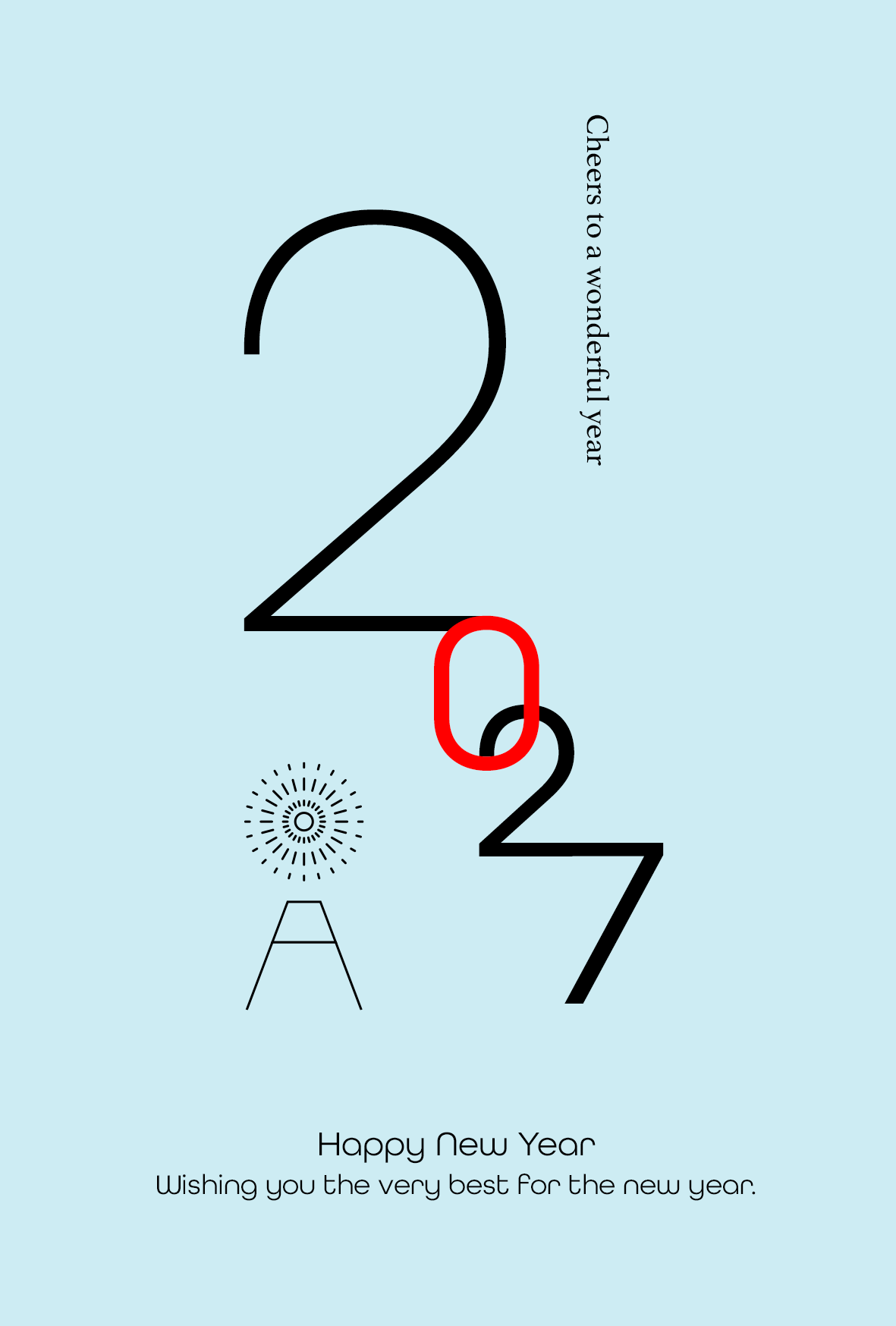 2027年(令和9年)の年始挨拶にふさわしい、モダンでおしゃれな年賀状テンプレートです。