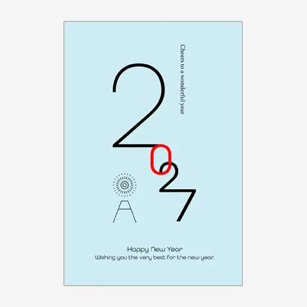 2027年(令和9年)の年始挨拶にふさわしい、モダンでおしゃれな年賀状テンプレートです。