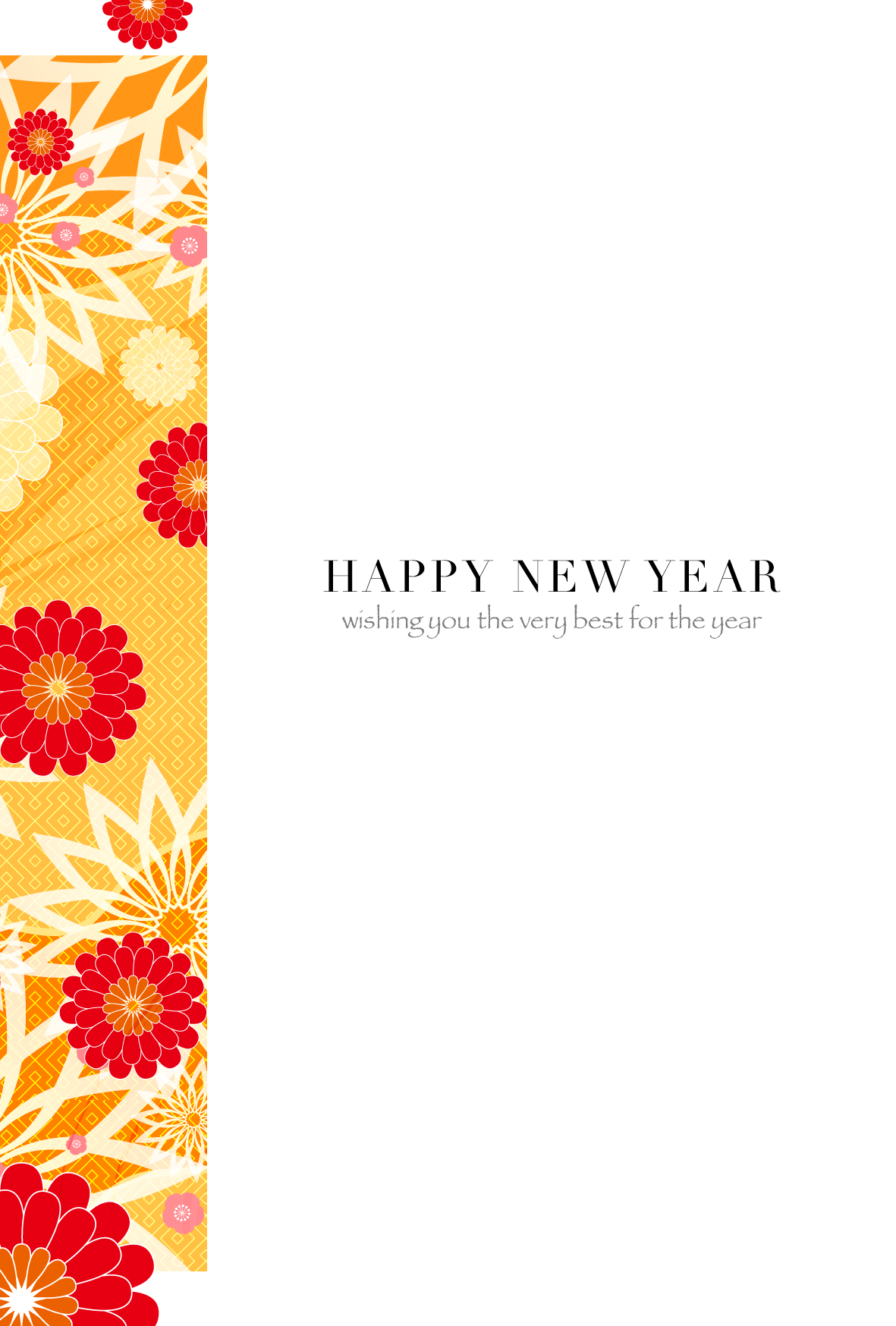 華やかな和風模様の背景に英文を使った、とても「おしゃれ」なデザインです。