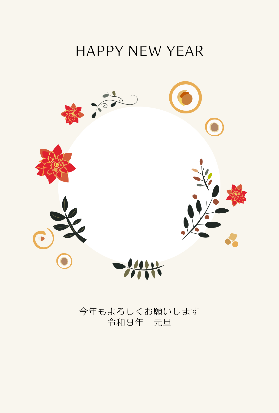 年賀状 写真 無料 | かわいい・テンプレート・2027・登録不要 [PTC005]