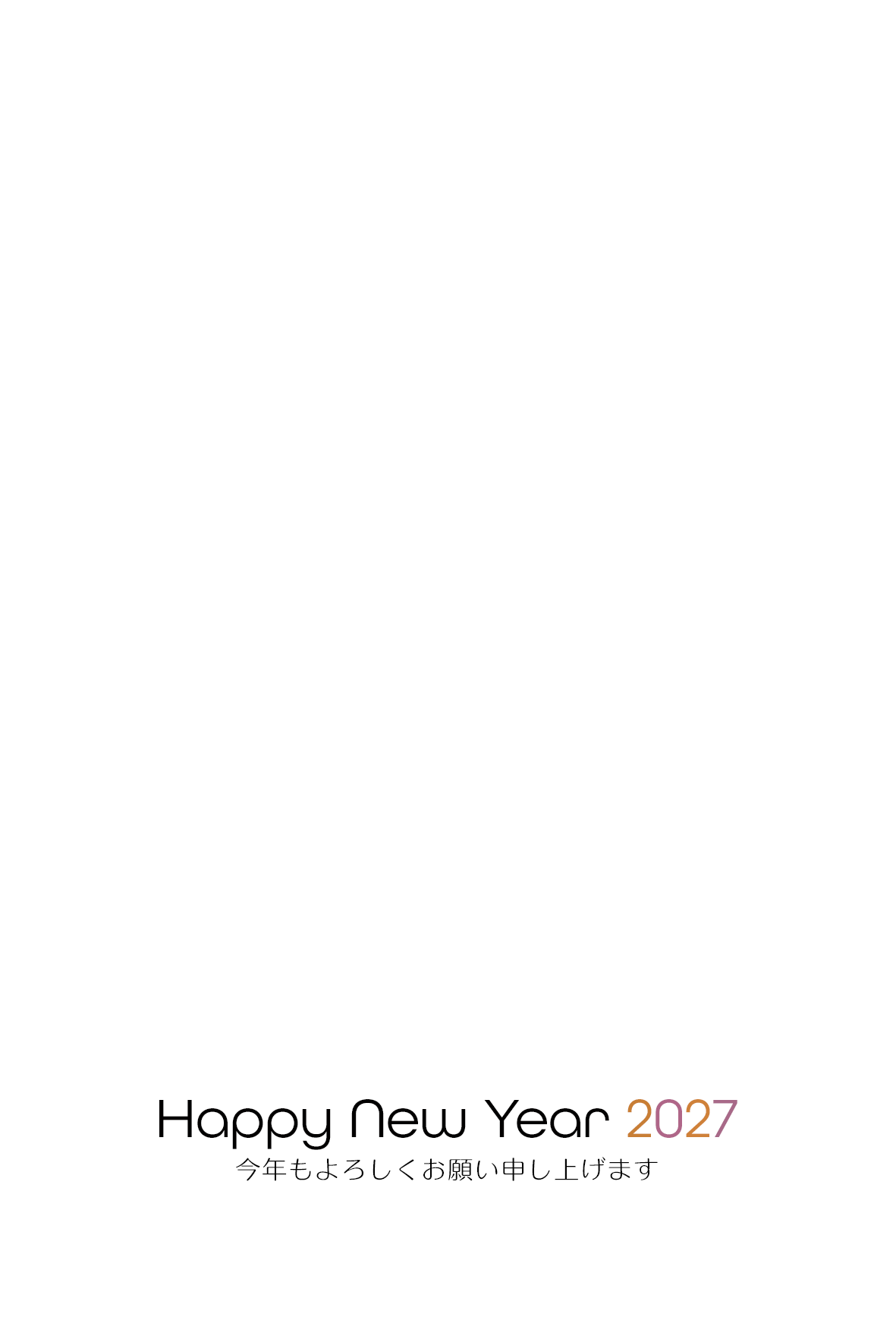 2027年(令和9年)の年始挨拶に。写真が主役の白の背景をベースに使った、「シンプル」で「モダン」な写真フレームデザインの年賀状テンプレートです。