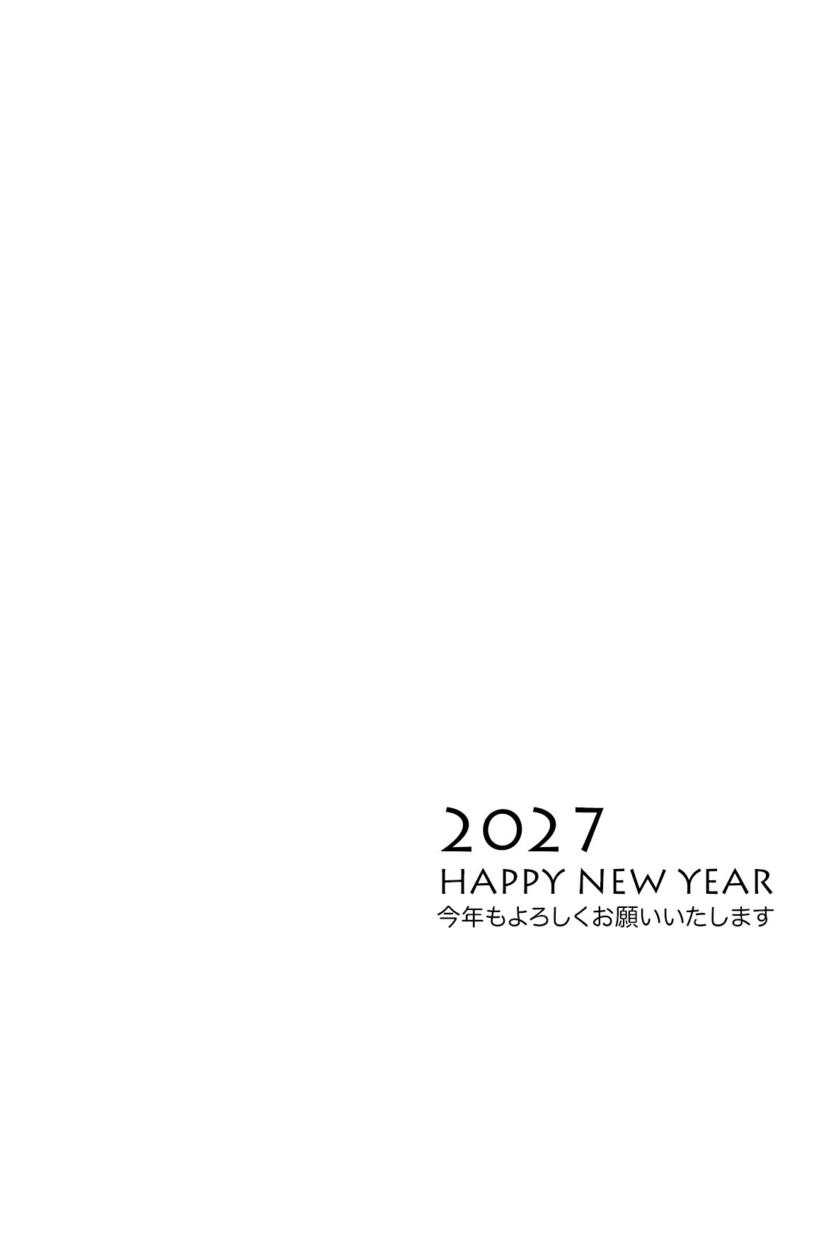 2027年(令和9年)の年始挨拶に。写真が主役の白の背景をベースに使った、「シンプル」で「モダン」な写真フレームデザインの年賀状テンプレートです。