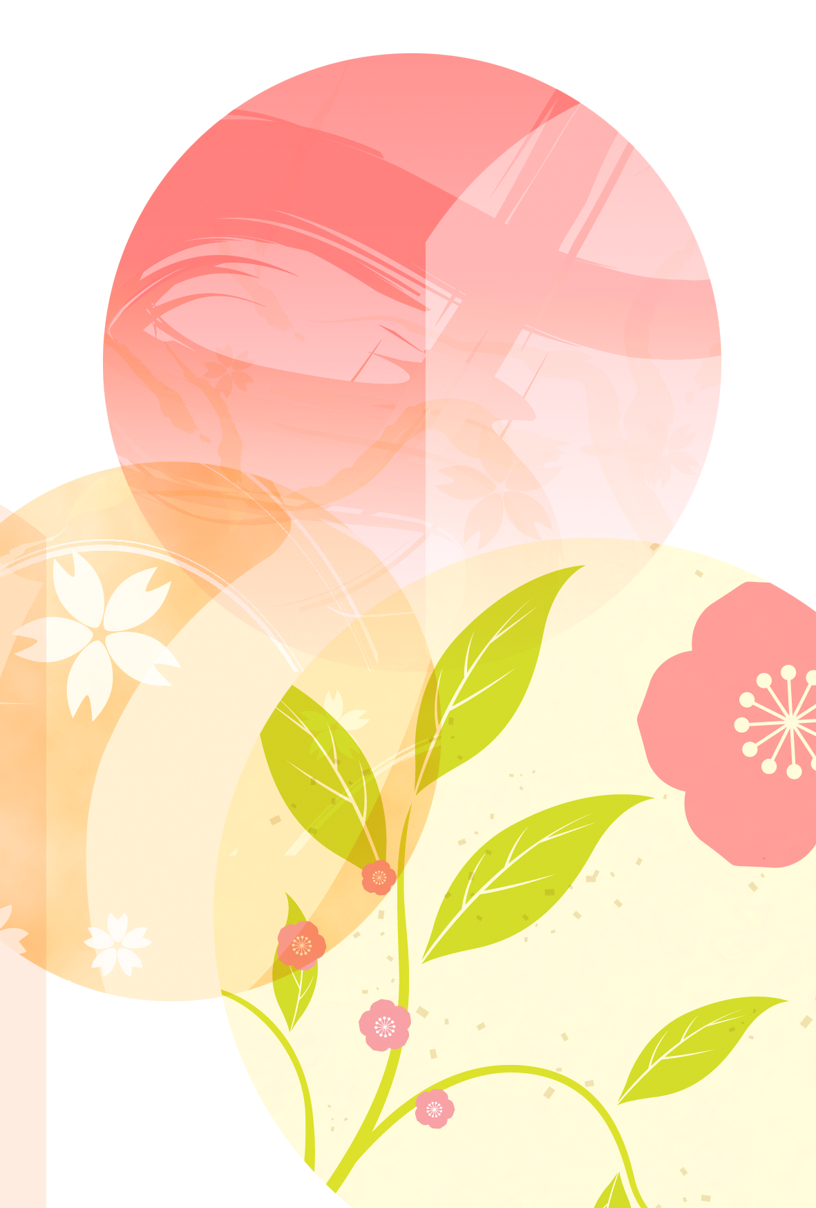 白の背景に梅の花や桜の花をバランス良く組み合わせた、上品で優しい和風デザインです。