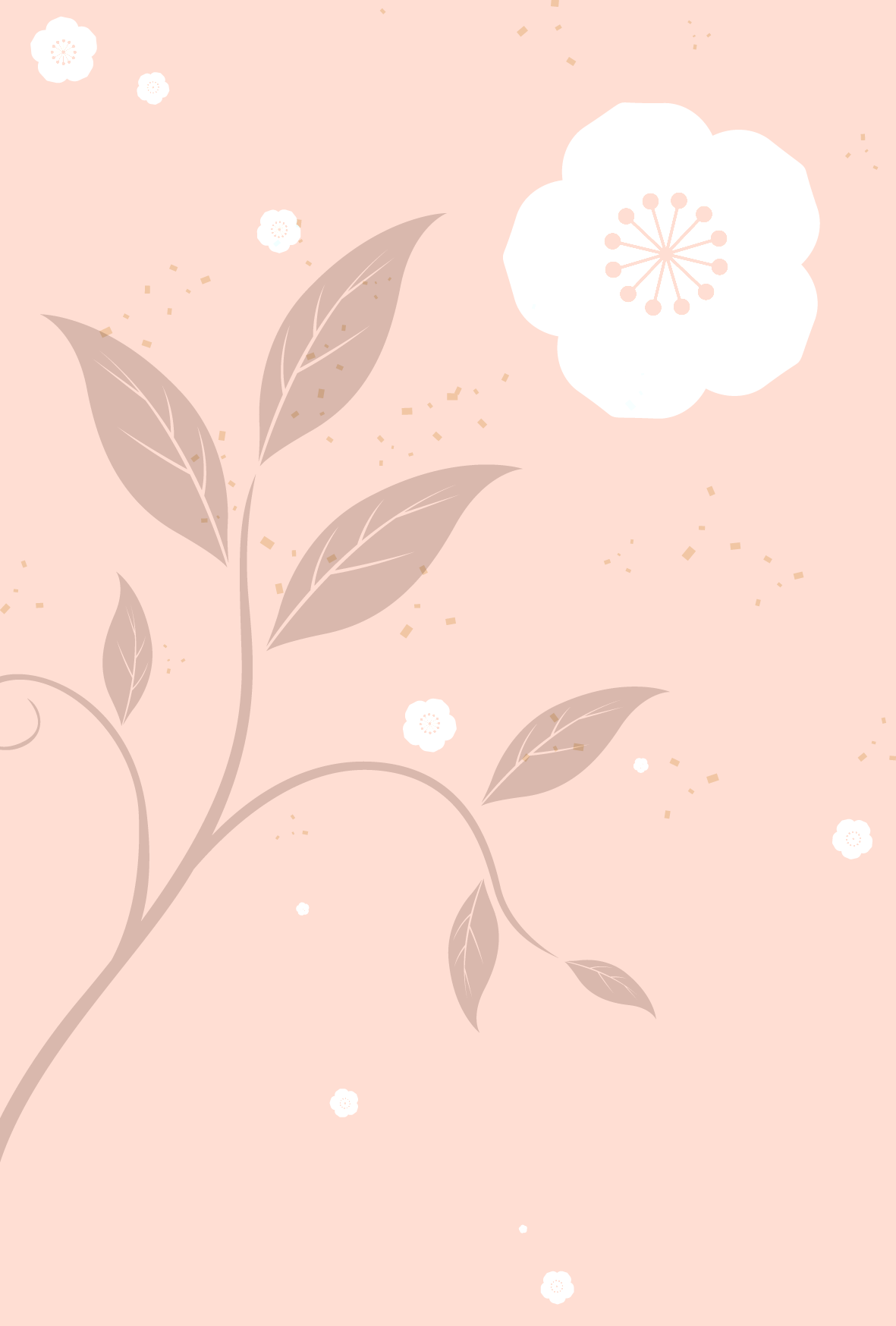 アプリコットの色彩を背景に梅の花を大きく使った、和風テイストを残したモダンなデザインです。